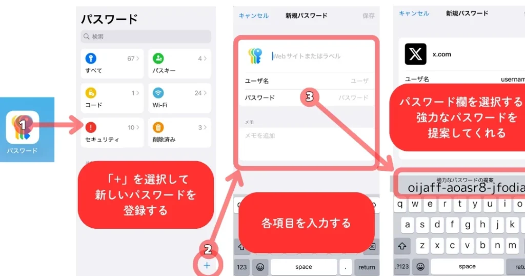アプリ用パスワードを安全に保存する方法を確認します。以下の手順で保管管理ができます。