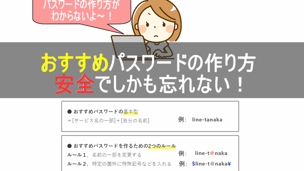 定期的にパスワードを見直し、セキュリティ向上のために新しいtパスワードに変更します。