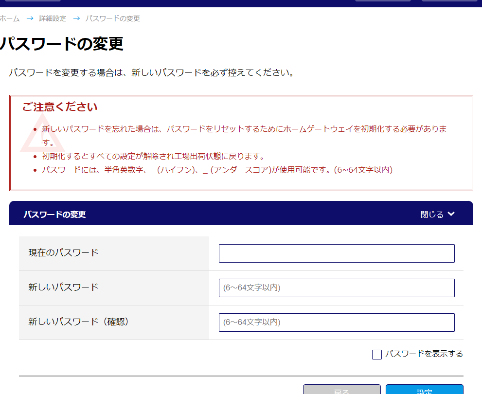 - 新しいパスワードを入力します。 要件に従い、8文字以上の英数字を組み合わせて設定します。