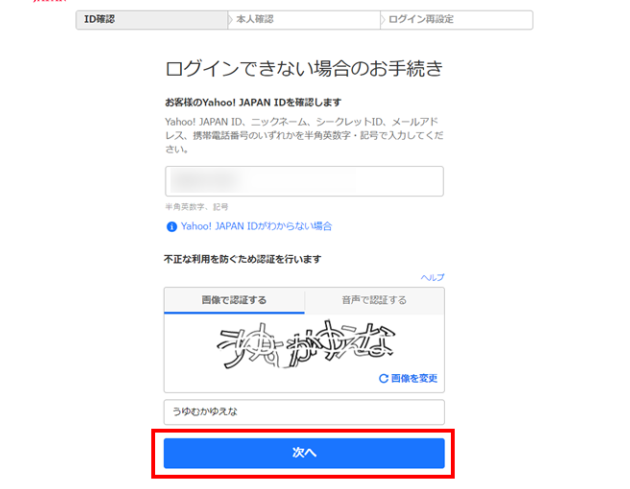 - 登録したメールアドレスまたは携帯電話番号を入力します。 これが、確認手続きに使われる情報です。