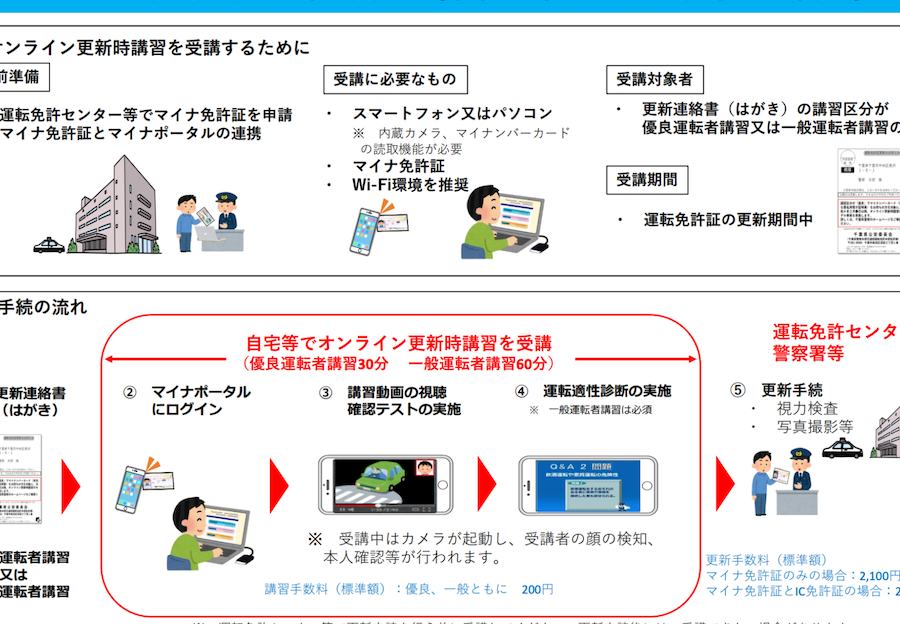 - 運転免許に関するオンライン講習を受講する。 更新を含む講習がオンラインで受けられ、時間を節約できる。