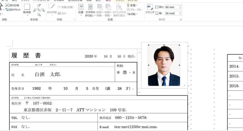 ここでは、履歴書に記入する基本情報を示します。
