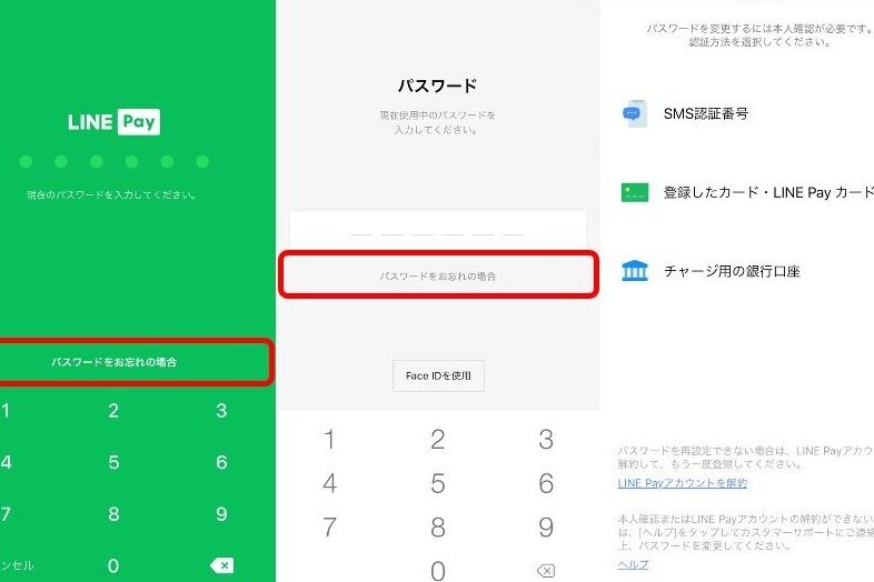 Line Payのパスワードを忘れた場合