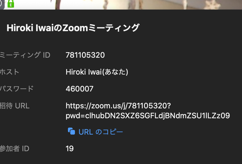 - パスワードを確認する。 ミーティング詳細内に表示されたパスワードを確認します。