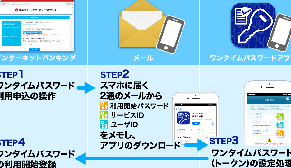金融取引の際にも、ワンタイムパスワードが重要です。その使用方法は次のようになります。