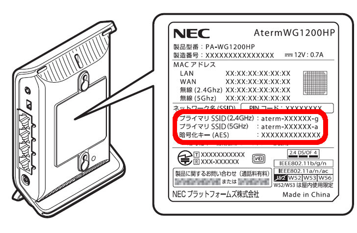 - NEC Aterm WG1200HP: 12345678