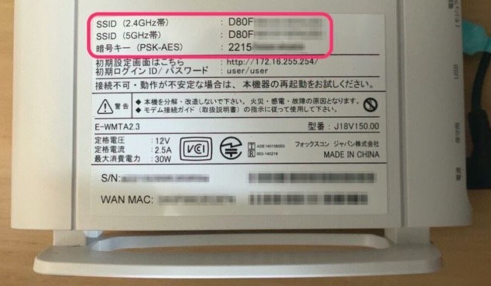 ルーター本体の底面や側面にあるラベルに、デフォルトのWi-Fiパスワードが記載されています。