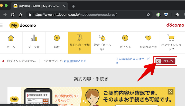 任意のブラウザを開き、ドコモの公式ウェブサイトにアクセスします。