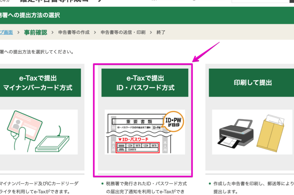 - 提出方法を選択します。オンラインまたは郵送のいずれかを選び、手続きを進めます。