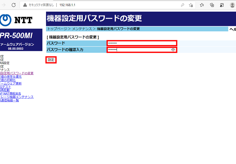 初期設定後、セキュリティのため、新しいパスワードを設定することをお勧めする。