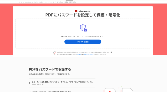 - サイトにアクセスし、パスワードがかかったPDFファイルをアップロードします。