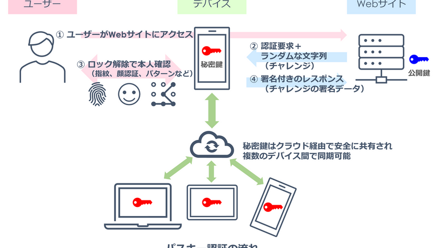 - デバイス依存: 各デバイスに固有のパスキーが生成され、他のデバイスでは使えません。