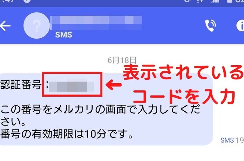 - 受信したパスワードを確認します。 SMSを開いて、ワンタイムパスワードを読み取ります。