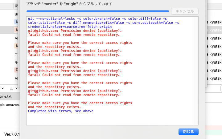 SourceTreeに戻り、操作を行って問題が解決されたかどうか確認します。