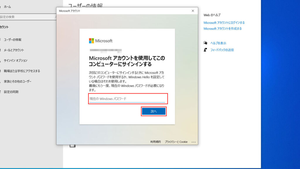 マイクロソフトアカウントのパスワード設定方法