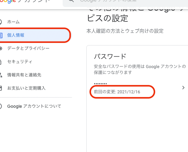 - アカウントに入ったら、左側のメニューから「セキュリティ」を選択します。